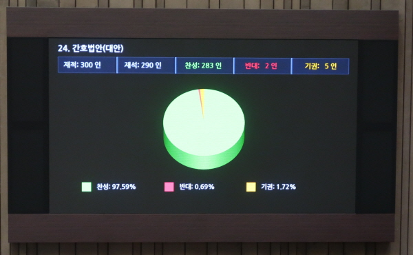 간호법, 국회 본회의 통과 --- 재석 290명 중 찬성 283표 가결