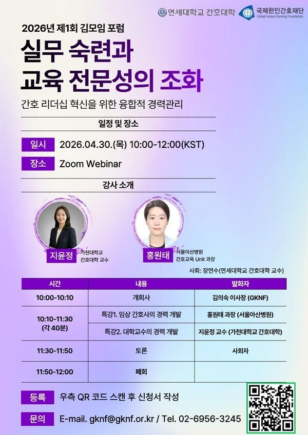 국제한인간호재단(GKNF)과 연세대학교 간호대학은 오는 30일 ‘2026년 제1회 김모임 포럼’을 공동 개최한다.