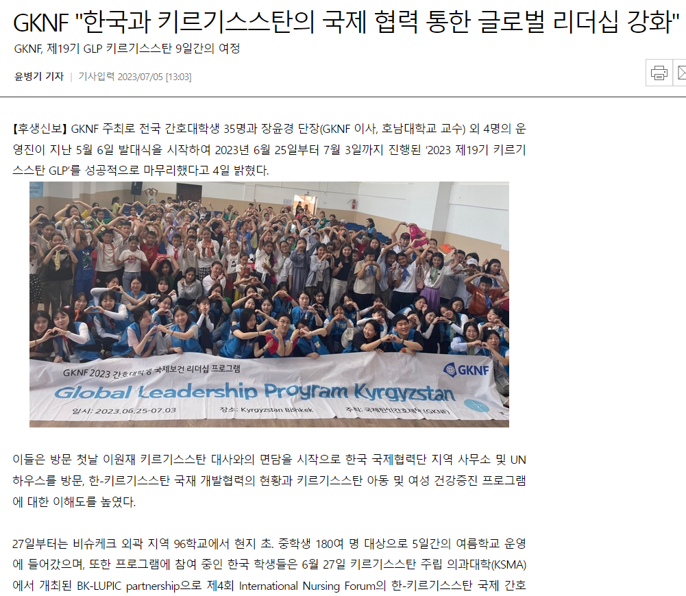 GKNF "한국과 키르기스스탄의 국제 협력 통한 글로벌 리더십 강화"