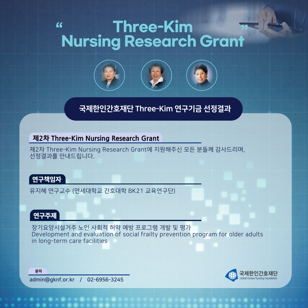 2023년 제2차 Three-Kim Nursing Research Grant 선정결과를 안내드립니다.