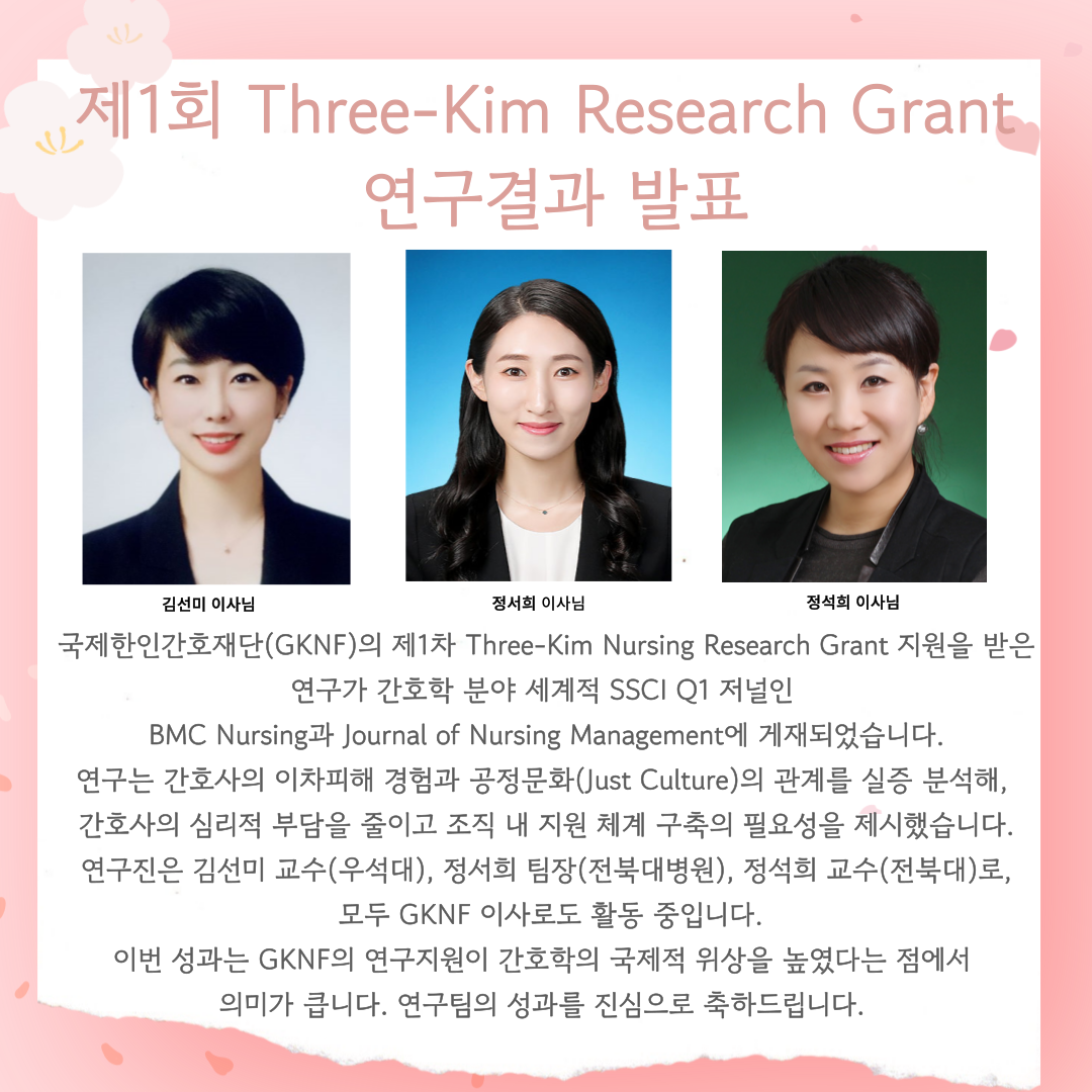 제1차 Three-Kim Nursing Research Grant 연구 결과 발표